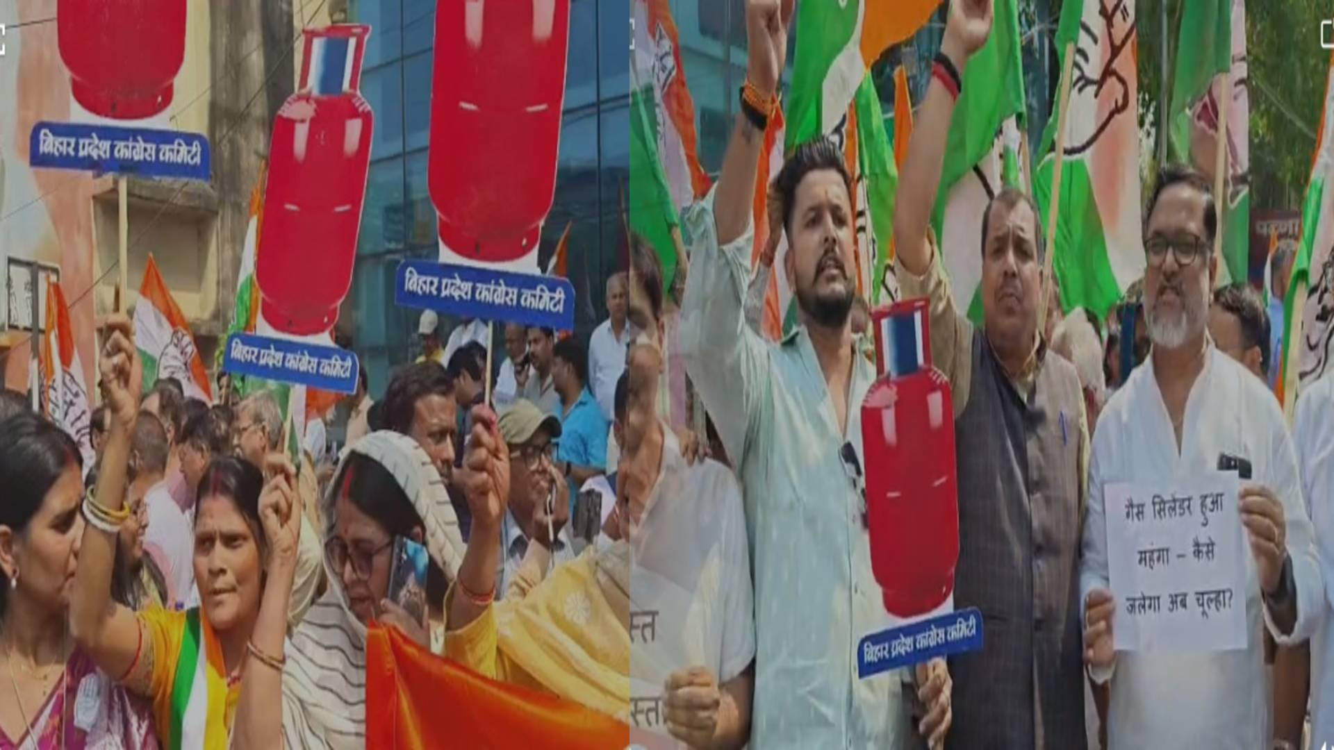 गैस की किल्लत को लेकर पटना में सड़कों पर उतरी कांग्रेस, जोरदार प्रदर्शन