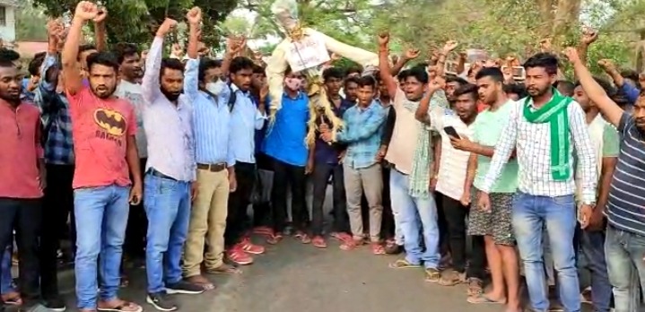 दुमका (DUMKA) : 1932 खतियान पर बवाल दिन पर दिन बढ़ता जा रहा है. इस बार तो और कहीं नहीं बल्कि मुख्यमंत्री हेमंत सोरेन के क्षेत्र दुमका मे छात्रों का आक्रोश दिखा. बता दें कि हेमंत सरकार द्वारा बेरोजगार युवाओं को नौकरी और 1932 के खतियान आधारित स्थानीय और नियोजन नीति पर यू-टर्न लेने से आक्रोशित छात्र समन्वय समिति के सदस्यों ने दुमका एसपी कॉलेज के सामने सीएम का पुतला फूंका. बड़ी संख्या मे छात्र समन्वय समिति के बैनर के साथ एसपी कॉलेज के सामने सभी छात्र एकत्रित हुए और जमकर सरकार के खिलाफ नारेबाजी की और भीषण आक्रोश में सीएम का पुतला फूंका.