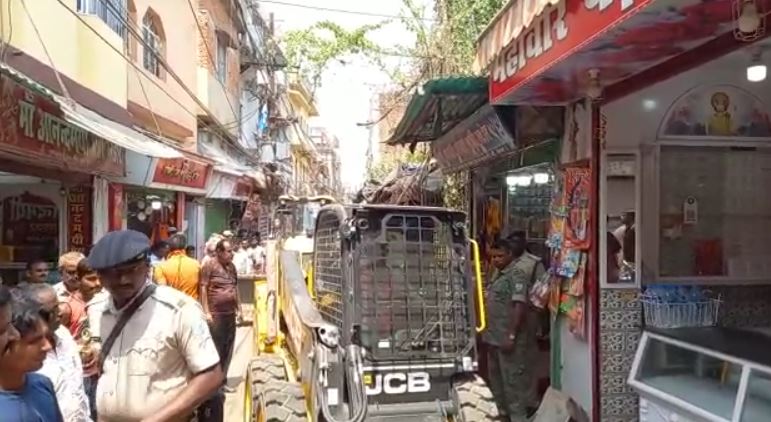 देवघर (DEOGHAR) : त्रिकुट रोपवे हादसा के बाद किसी अप्रिय आपदा को लेकर जिला प्रशासन अलर्ट हो गया है. अब सब की नज़र विश्व प्रसिद्ध श्रावणी मेला के सफल संचालन पर टिकी है. खासकर बाबा मंदिर के आसपास का क्षेत्र अतिक्रमण को लेकर प्रशासन के लिए बड़ी चुनौती बनी हुई थी. पिछले दिनों आपदा प्रबंधन की बैठक में मंदिर के आसपास के क्षेत्रों से अतिक्रमण हटाने का निर्णय लिया गया. इसी के तहत आज अतिक्रमण हटाओ अभियान चलाया गया. नगर निगम के आयुक्त शैलेंद्र कुमार लाल की मौजूदगी में पुलिस प्रशासन के अधिकारी के समक्ष अतिक्रमण की दुकानों को हटाया गया.