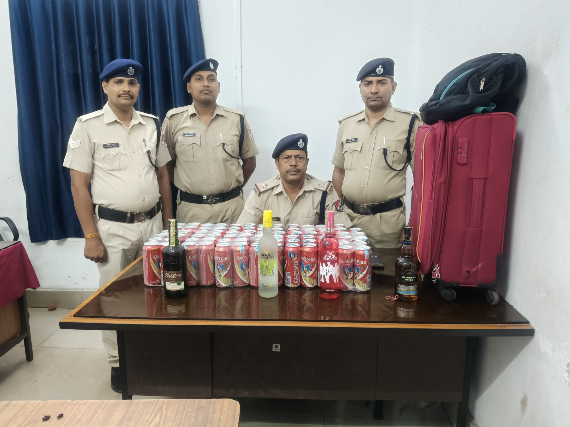 टीम ने तत्काल आसपास मौजूद यात्रियों से पूछताछ की, लेकिन किसी भी यात्री ने बैग पर अपना दावा नहीं किया. स्थिति को संदिग्ध देखते हुए सुरक्षा टीम ने कुछ समय इंतजार करने के बाद बैग को खोलकर जांच की.जांच के दौरान बैग के अंदर कुल 77 कैन किंगफिशर बीयर और 4 बोतल अंग्रेजी शराब बरामद की गई. बरामद सभी शराब की बोतलों पर “For Sale in West Bengal” अंकित पाया गया, जिससे इसके अवैध परिवहन की आशंका जताई जा रही है. सुरक्षा बल ने तत्परता दिखाते हुए सभी शराब को जब्त कर लिया.