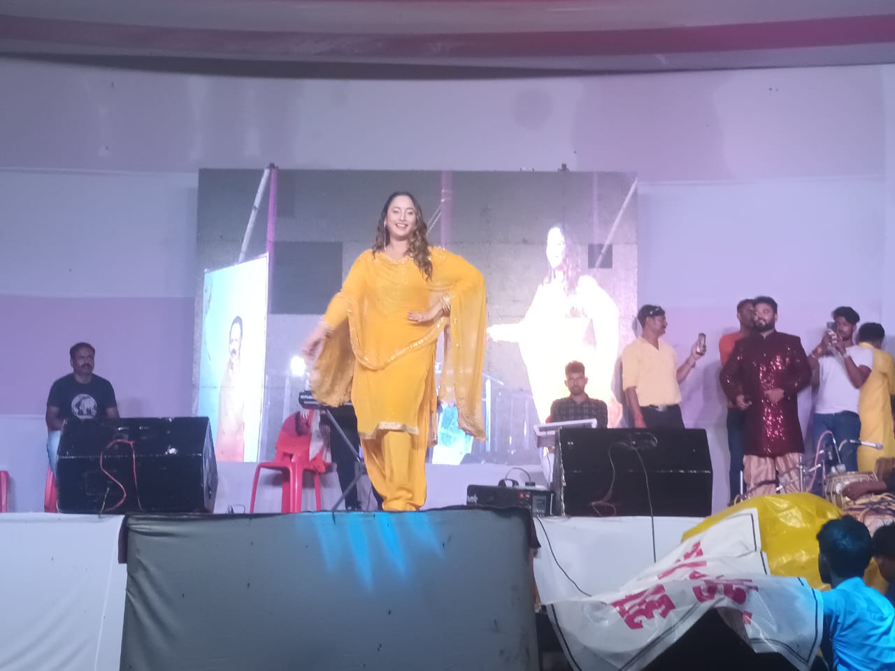कार्यक्रम का आगाज भोजपुरी गायक गोपाल राय ने माता रानी के भजन से किया. भोजपुरी फिल्म की अदाकारा रानी चटर्जी ने बारिश के बावजूद अपने डांस से लोगों को जमे रहने पर मजबूर कर दिया. उन्होंने अपनी फिल्म के कई गीत पर ठुमके लगाए. सईयां जी दिलवा मांगे ले..पर मैदान में मौजूद श्रोता थिरकने पर मजबूर हो गए. वहीं मोनिका राय ने श्रोताओं को हिलने नहीं दिया. एक से बढ़कर एक गीत पर ठुमके लगाए. भोजपुरी फिल्मों की गायिका शिल्पी राज ने माता रानी के भजन प्रस्तुत कर श्रोताओं को भक्ति रस में डूबा दिया.
