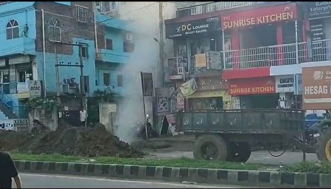 रांची (RANCHI) : राजधानी रांची में मंगलवार को एक बड़ा हादसा टल गया है. बता दें कि शहर के सिंहमोड के पास पीएजी गैस पाइप फट गया था. मिली जानकारी के अनुसार बिजली का केबल बिछाया जा रहा था. इसी बीच पीएजी का गैस पाइप फट जाता है. जिससे चारो तरफ अफरा-तफरी मच गई.