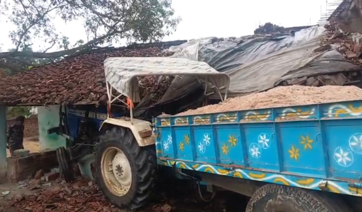 देवघर (DEOGHAR) : जिले के देवीपुर थाना क्षेत्र स्थित गिधैया गांव में सोमवार को एक हादसा हो गया. दरसअल अवैध बालू उत्खनन के खिलाफ पुलिस की कार्रवाई के दौरान एक बेकाबू ट्रैक्टर एक कच्चे घर में घुस गया. इस घटना से घर पूरी तरह क्षतिग्रस्त हो गया. बताया जा रहा है कि पुलिस को इलाके में अवैध बालू उठाव की सूचना मिली थी.