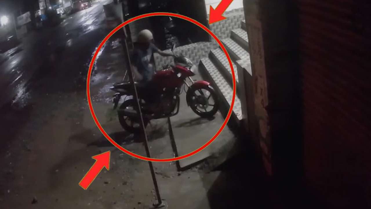 शहरी क्षेत्र के किस्को मोड़ में एक घर के बाहर एक लाल रंग की बाइक खड़ी थी, एक युवक बाइक के पास खड़ा होता है. काफी देर तक इधर-उधर देखने के बाद हैंडल घुमाकर उसका लॉक चेक करता है. बाइक का हैंडल लॉक था, इसके बाद वो बाइक से दो कदम पीछे जाकर हैंडल पर जोर से एक लात मारता है और हैंडल की लॉक पूरी तरह से टूट जाती है. इसके बाद वो बाइक पर बैठकर उसे धक्का देते हुए बड़े ही आराम से वहां से निकल जाता है, ये पूरी घटना वहां मौजूद सीसीटीवी में कैद हो गई है. जानकारी के अनुसार ये पूरा मामला सदर थाना क्षेत्र का है, मोटरसाइकिल संख्या JH 08B 9724 शास्त्री नगर निवासी जय शंकर सिंह की है. जिसे उन्होंने किस्को मोड़ निवासी अमर नाथ साहू के पास बेचा था. वहीं बाइक अमरनाथ साहू के घर के बाहर खड़ी थी तभी उस चोर ने बाइक पर हाथ साफ कर दिया.