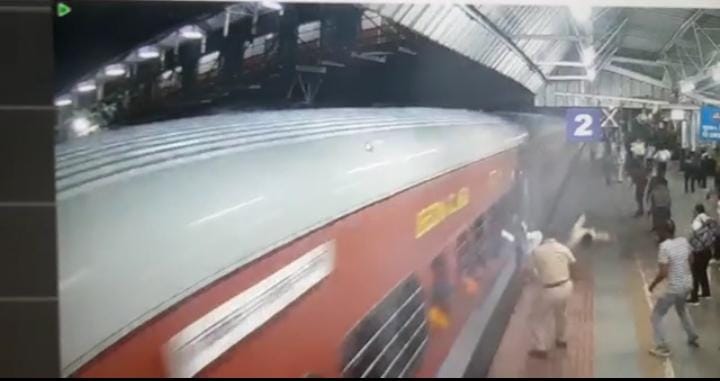 देवघर (DEOGHAR) : हावड़ा-नई दिल्ली मुख्य रेल मार्ग स्थित देवघर के मधुपुर रेलवे स्टेशन पर ड्यूटी में तैनात रेलवे सुरक्षा बल के एएसआई यू मंडल ने अपनी जान जोखिम में डाल कर एक वृद्ध रेल यात्री की जान बचा ली. पूरा घटनाक्रम रेलवे स्टेशन में लगे सीसीटीवी कैमरा में कैद होगा गया. पुलिस जवान की इस बहादुरी के लिए वो खूब सराहए जा रहे है.