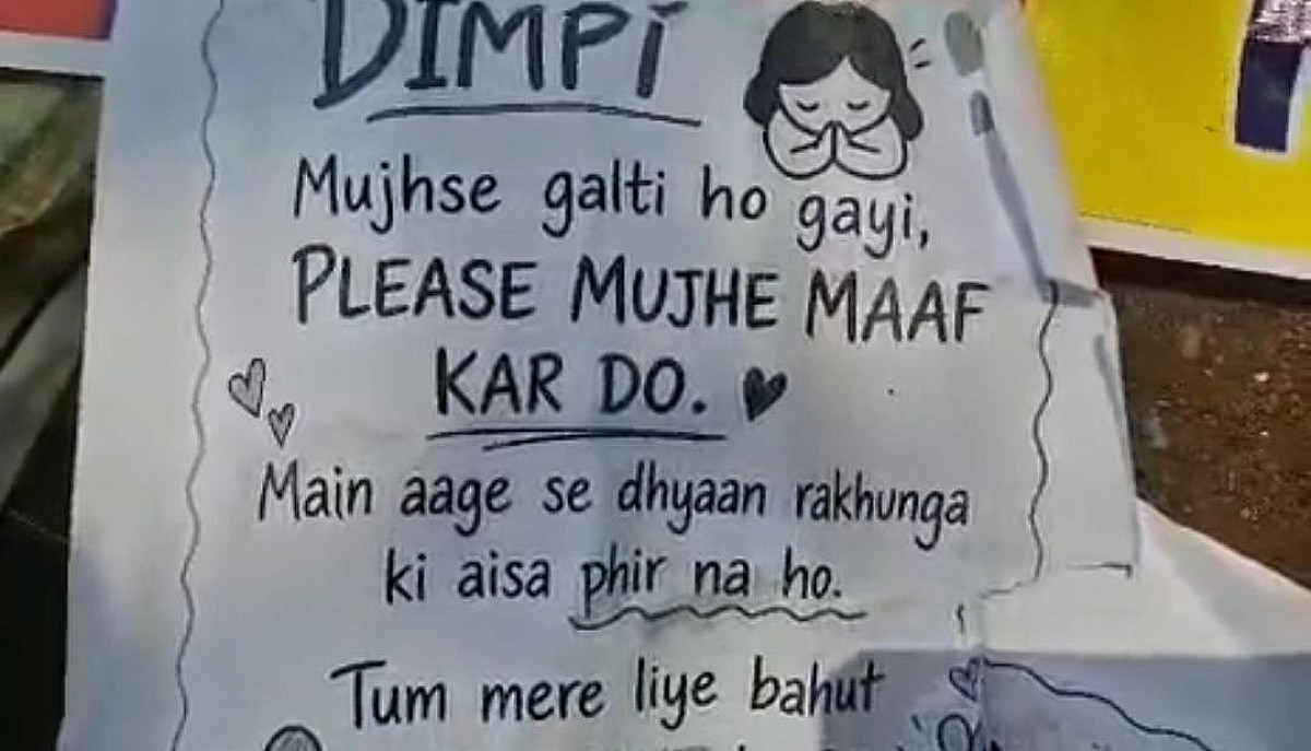 प्रेमी ने खुलेआम पोस्टर चिपका कर प्रेमिका से मांगी माफ़ी