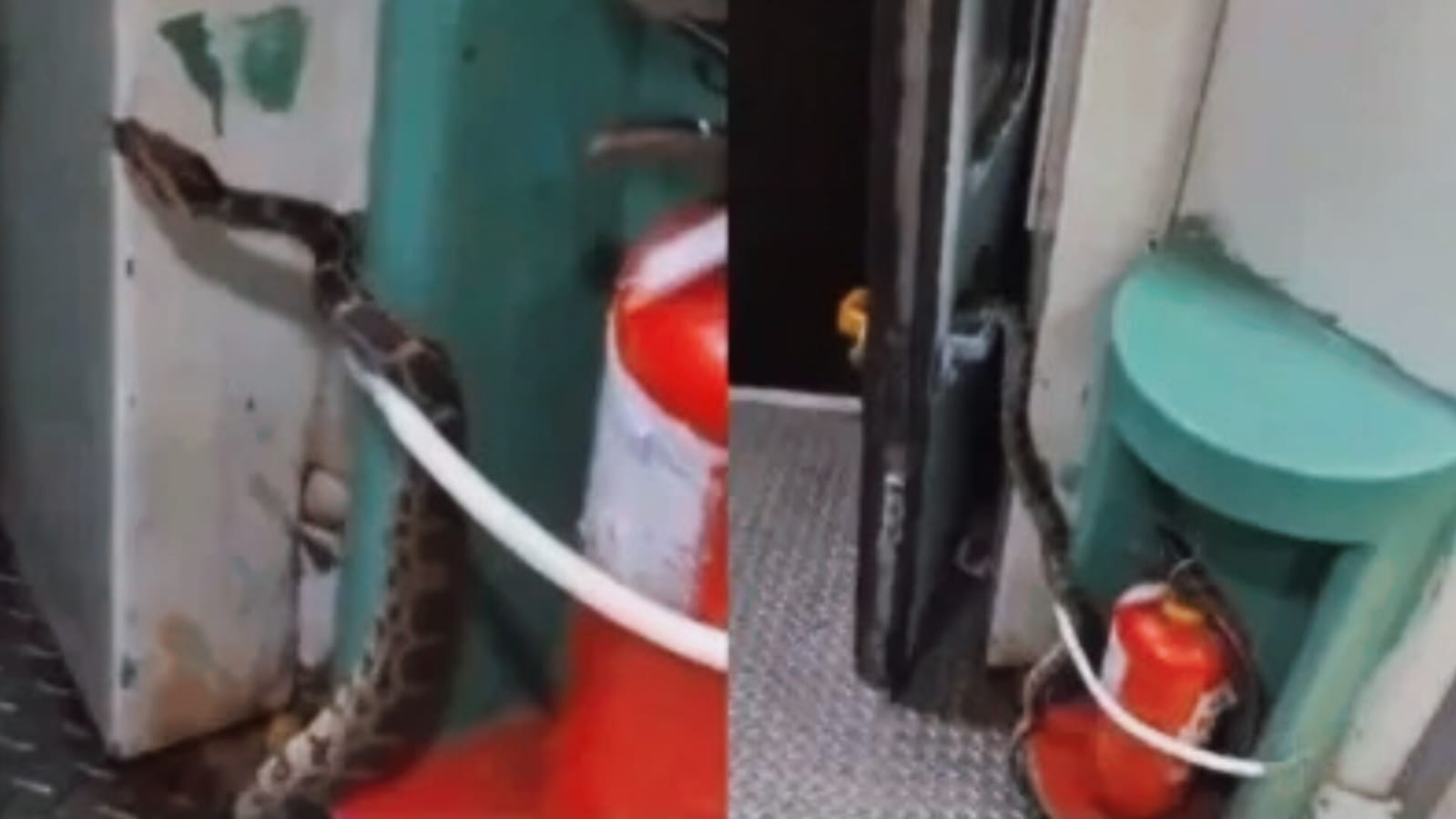 टीएनपी डेस्क (TNP DESK): सोशल मीडिया पर इन दिनों एक हैरान करने वाला वीडियो खूब वायरल हो रहा है. वीडियो में देखा जा सकता है कि एक लंबा अजगर ट्रेन के टॉयलेट के पास छिपा हुआ है. यह घटना मदुरै से चेन्नई जा रही एक ट्रेन की बताई जा रही है, जहां अचानक यात्रियों की नजर उस विशाल अजगर पर पड़ी और कोच में अफरा-तफरी मच गई.